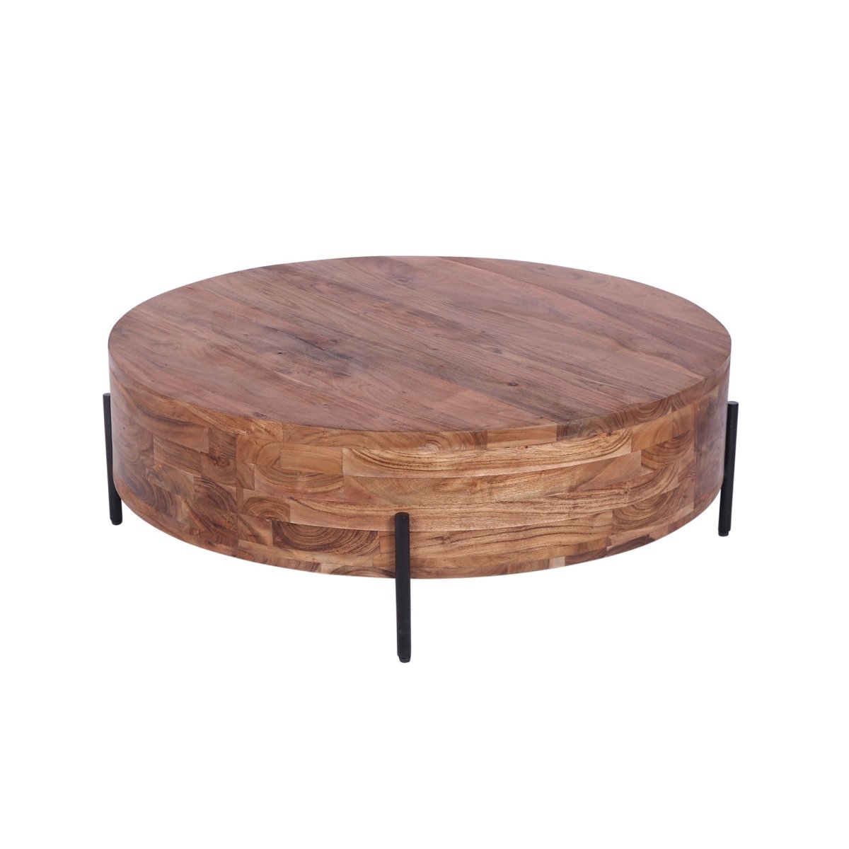Modern Industrial Round Coffee Table - Natural Acacia Wood