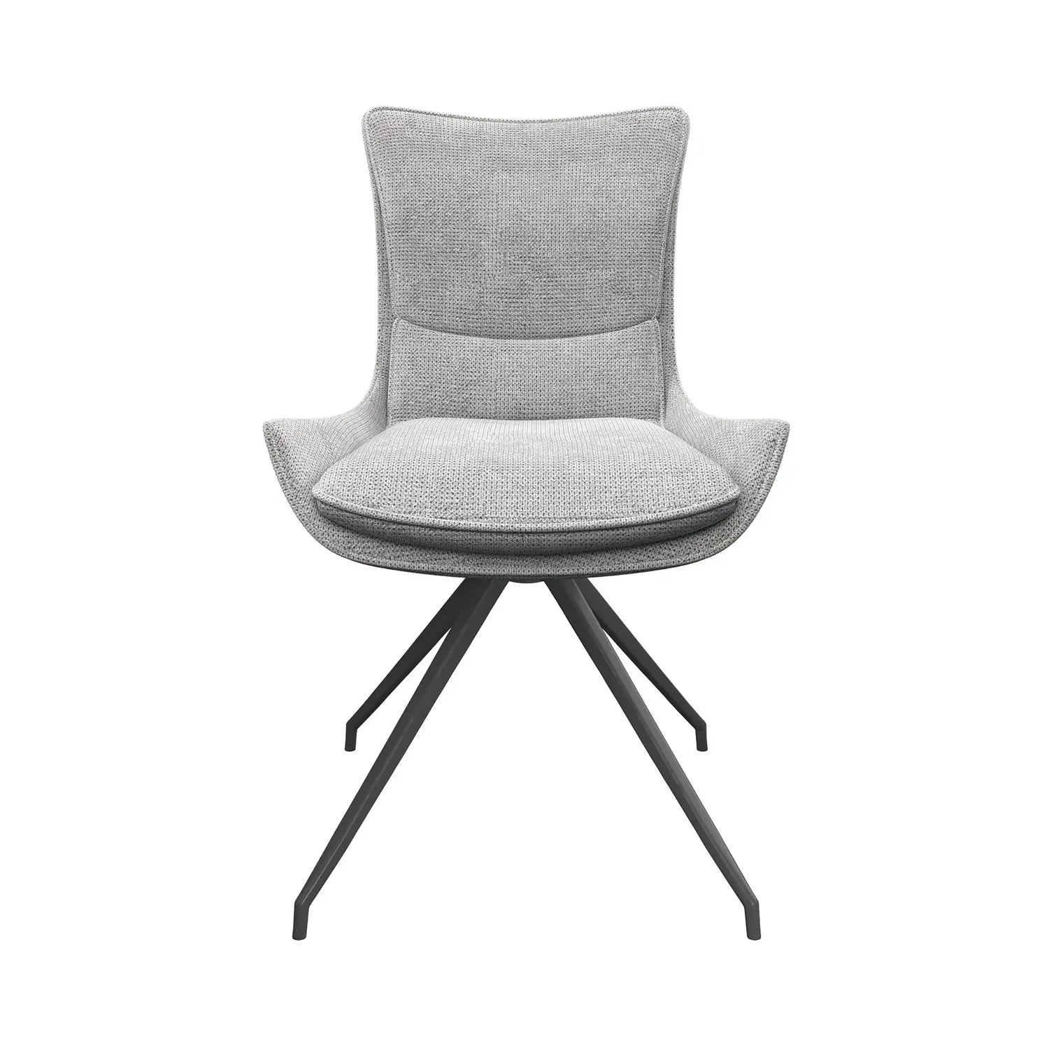 Completing the set are four Amber Swivel Dining Chairs, designed to offer both comfort and refined visual appeal. Upholstered in a soft-touch grey fabric, these modern swivel dining chairs bring a tailored, high-end feel to the dining area. Each chair features a 360-degree rebound swivel mechanism, allowing effortless rotation before gently returning to its original position—keeping your dining space neat and organised. With contoured cushioned seats, padded backrests, and distinctive powder-coated spider legs, these chairs provide outstanding comfort from casual meals to extended dinner gatherings.
