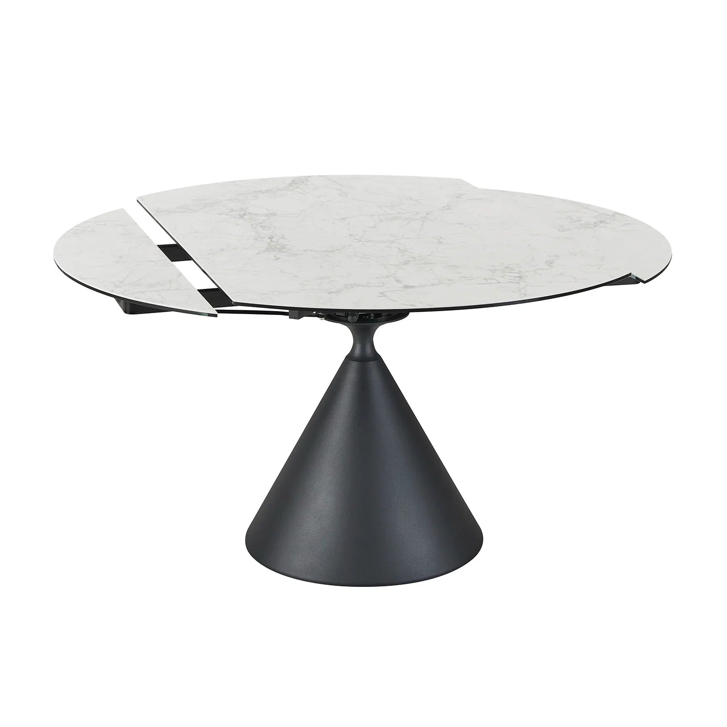Designed for flexibility, the Summit table includes a smooth extension mechanism that allows the circular top to expand effortlessly, providing additional dining space without disrupting the room’s flow. Whether used closed for relaxed family dining or extended for hosting guests, the table remains a striking focal point with balanced proportions and modern elegance.