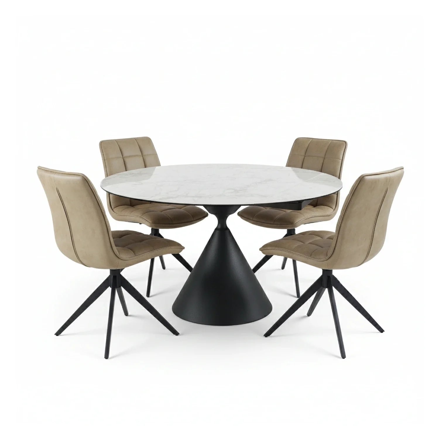 Create a refined and inviting dining space with the Summit Circular Ceramic Extending Table & 4 Swivel Chairs — a sophisticated dining set designed for modern living, elegant entertaining, and everyday comfort. Blending architectural form, high-performance materials, and luxury seating, this suite transitions seamlessly from intimate meals to stylish dinner gatherings.