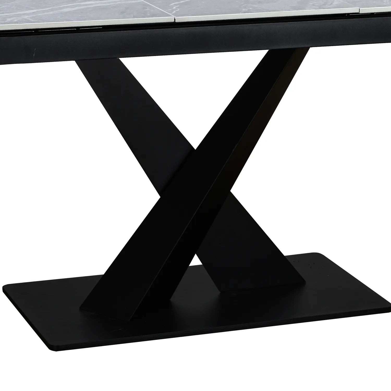 Modern Industrial Base – Supported by sturdy, powder-coated metal legs in a distinctive crossed pedestal design, combining strength with contemporary style.