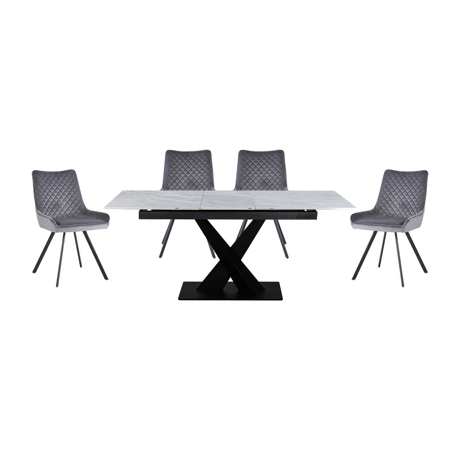 Upgrade your dining experience with the Extending Ceramic Dining Set, a versatile solution for modern homes that blends space-saving design, durability, and contemporary style. Featuring a 140cm to 180cm extendable dining table and 4 upholstered velvet chairs, this set adapts effortlessly to both everyday meals and entertaining guests.
