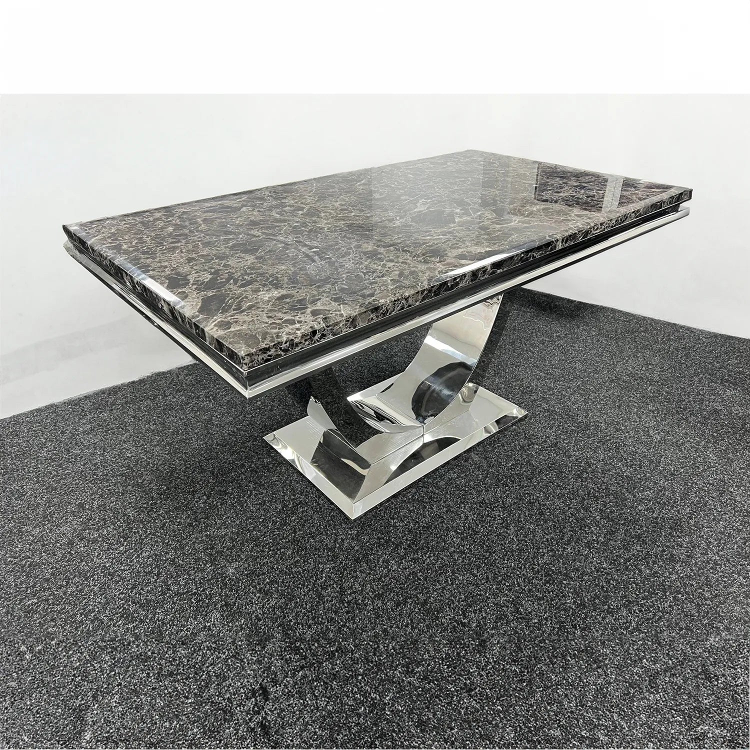 The table is supported by a polished chrome U-shaped base, crafted from stainless steel for superior strength and stability. The reflective chrome finish adds a sleek, modern feel that enhances both minimal and glamorous interiors.