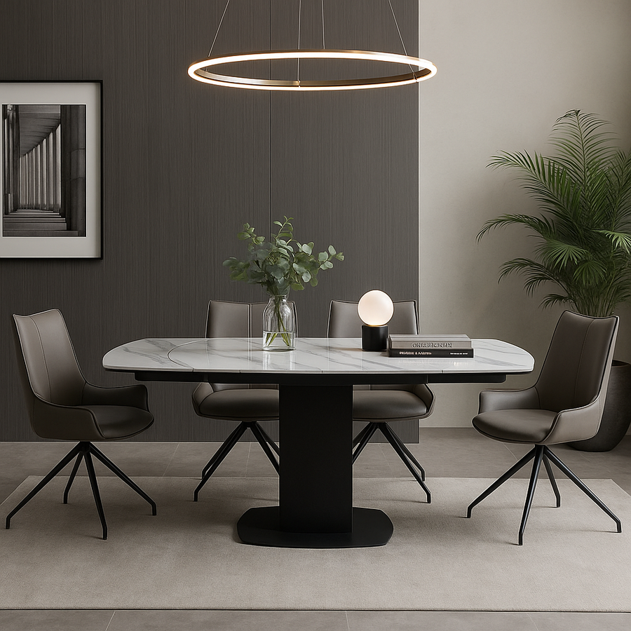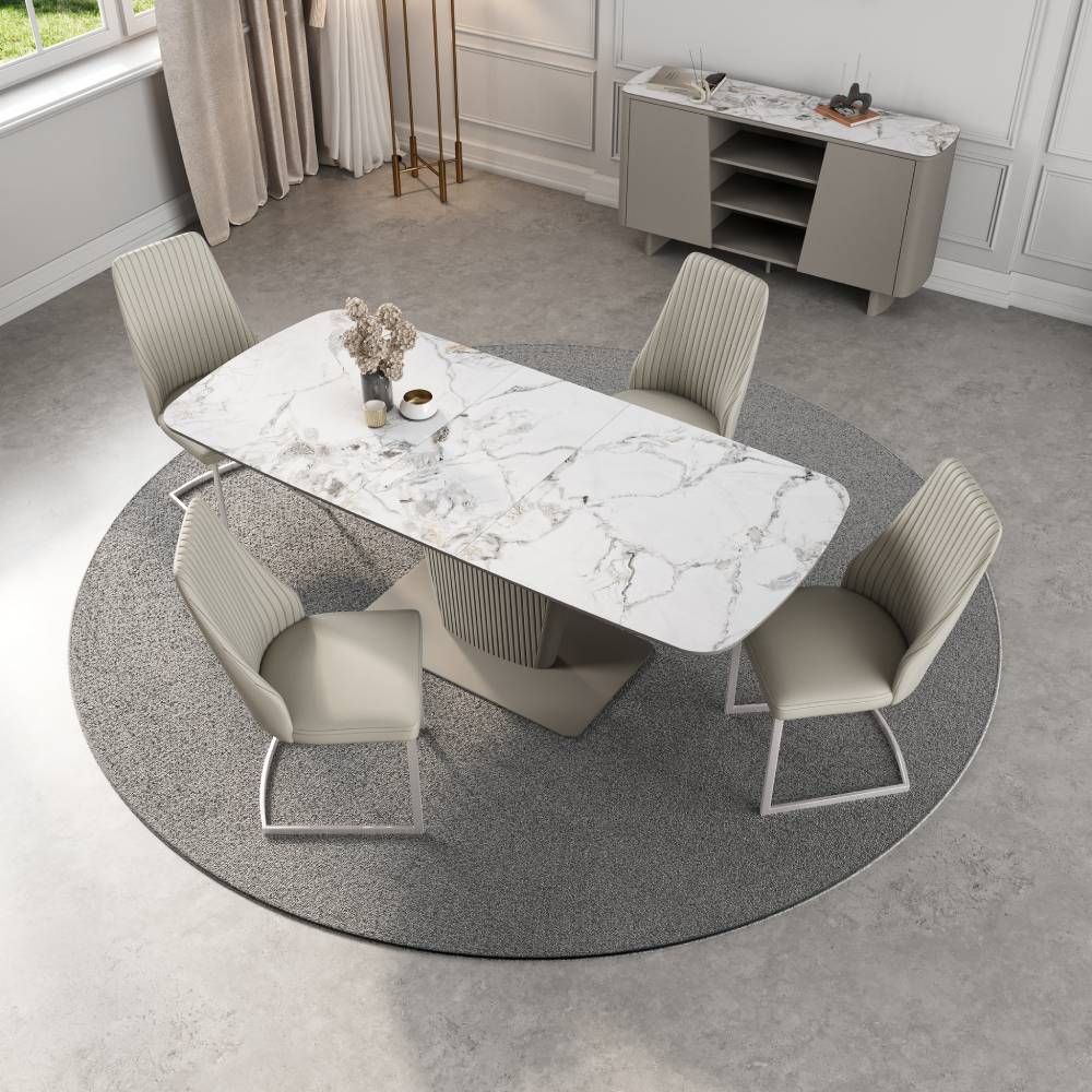 Shape: Depending on the size of the dining room, you should consider the size of the table that will fit the room. For areas with limited space, round or square tables are preferred because they do not have protruding corners. Rectangular tables allow more people to be seated and are ideal for large dining areas. However, they need more space around them to allow people to move around the table freely.