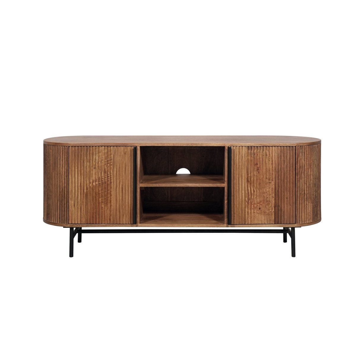 Transform your living area with the Grooved Mango Wood TV Unit — a perfect blend of functionality, artistry, and modern elegance.