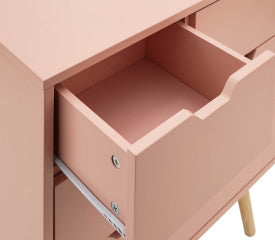 The warm coral pink finish brings a fresh, on-trend pop of colour to your interior, easily complementing both neutral and vibrant décor schemes. Supported on slender mid-century-inspired pale-wood legs, this chest adds a light, airy touch while enhancing the overall elegance of your bedroom. Perfect for those seeking a stylish, functional storage solution that makes a statement.