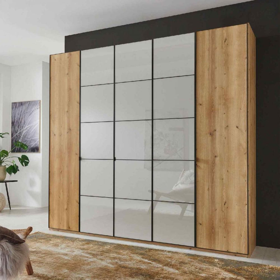 Wiemann Quito Bianco Oak and Champagne Glass 5 Door Wardrobe - 250CM