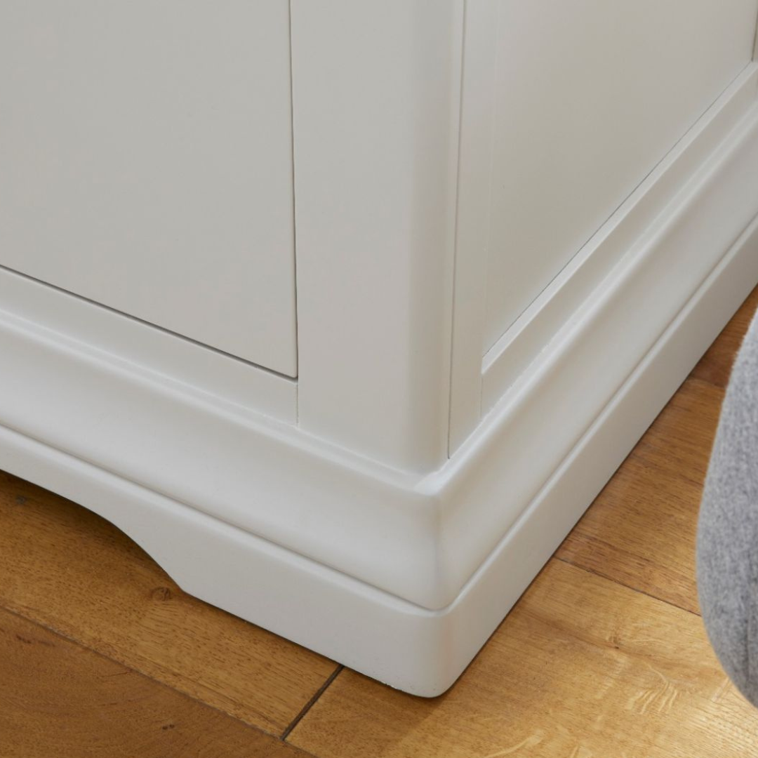 With four spacious drawers—two smaller top drawers and two large bottom drawers—this piece provides ample storage for clothes, accessories, or linens. The soft-painted finish, framed panels, and classic grooves give it a refined, contemporary look that complements both modern and traditional interiors.